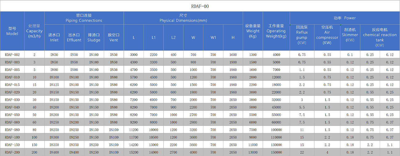 Tretirani otpadni otpad uzima se kao cirkulirajuća voda kroz cirkulacijsku pumpu i ulazi u spremnik otopljenog zraka. Istodobno se dodaje komprimirani zrak u spremnik otopljenog zraka, a u spremniku otopljenog zraka provodi se učinkovito miješanje sode-vode. Nakon miješanja, voda otopljena zraka koja sadrži zrak šalje se u kontaktno područje za flotaciju zraka. Trenutno oslobađanje tlaka kroz Releaser stvara veliki broj mikro -mjehurića, koji se brzo pričvršćuju na koaguliranu suspendiranu materiju. Gustoća suspendirane materije postupno je manja od gustoće vode, a automatski pluta na površinu. Voda na dnu opreme ostaje u žurbi, a ispušta se u područje čiste vode putem uređaja za izlaz vode na dnu. Dio vode u površini čiste vode i dalje se koristi kao cirkulacijski voda za opremu, a ostatak se ispušta u sljedeći postupak. Skilica za daljnje liječenje sruši se na površinu na površinu.
